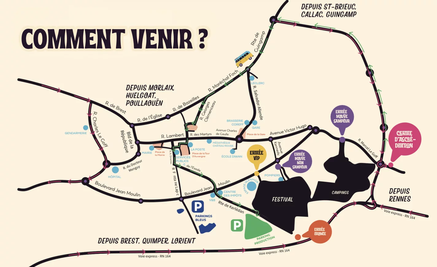 Le réseaux BreizhGo (anciennement Penn ar Bed) vous emmène au pied du festival et vous ramène en toute sécurité. Tarif : 1,50€ le trajet.
